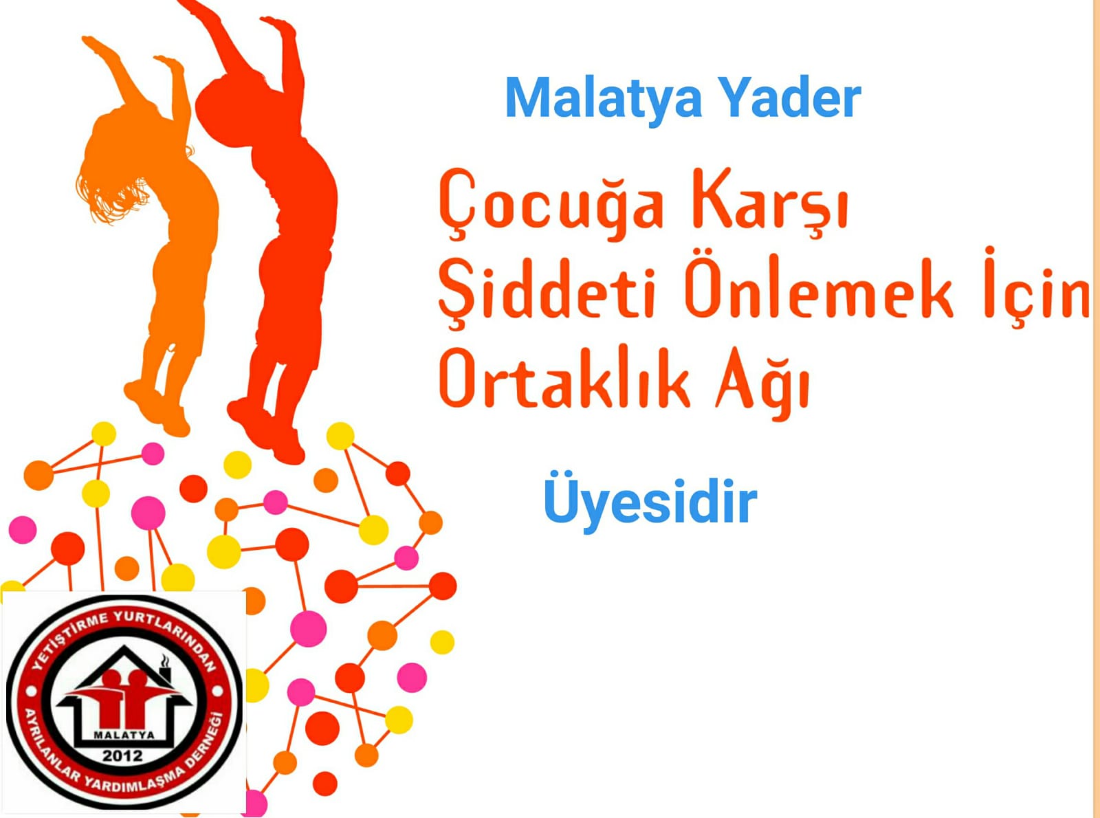 Malatya YADER olarak derneğimizin kuruluş amaç ve hedeflerine uygun olan Çocuğa Karşı Şiddeti Önlemek için Ortaklık Ağına katılım sağlamak için Ortaklık Protokolü imzalanarak 2019 yılında başvuru yapılmış ve 2020 yılından buyana Ortaklık Ağı üyesi olarak faaliyetlerini yürütmektedir.