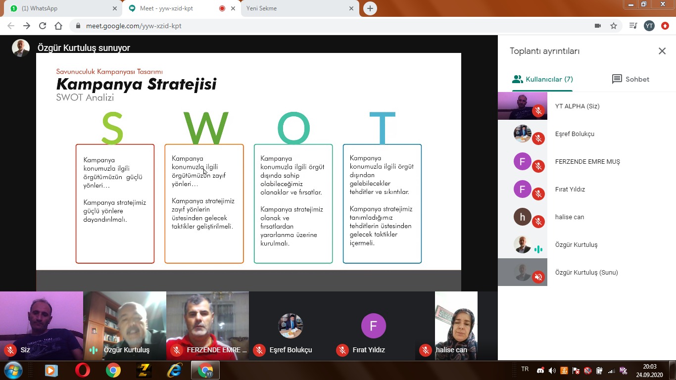 - Özgür Kurtuluş: Hak Temelli Savunuculuk, Dijital İletişim, Kampanya Yönetimi ve Sosyal Medya stratejileri.